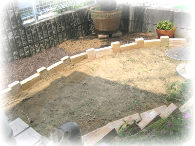 赤玉土&腐葉土ミックスとハーブの土を入れ