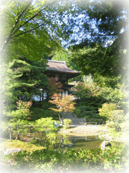 草花・木々の豊かな庭園の奥にあるお寺